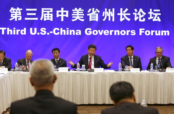 习近平主席充分肯定本届省州长论坛聚焦低碳经济发展,指出这非常切合当前中美两国和国际社会共同面临的挑战。习近平强调,地方合作对发展国家关系有着重要作用,国与国关系归根结底需要人民支持,最终也服务于人民。地方是最贴近老百姓的。过去30多年,中美关系发展得益于两国地方和人民支持,未来仍然要依靠地方、造福地方。近年来,中美地方交流合作呈现新的蓬勃发展态势。两国建立了43对友好省州、200对友好城市。当前,在经济全球化继续深入发展、中美各领域务实合作全面深化的背景下,两国地方交流合作有着更广阔天地。双方要有效利用中美两国经济巨大体量带来的机遇,共同分享中美两国改革发展的政策利好,努力发掘中美地方优势互补的潜能,加强贸易、投资、农业、信息产业、汽车产业、环保等方面合作。重视人文交流,在教育、旅游、体育、青年等广泛领域开展合作,共同谱写中美地方合作新篇章。