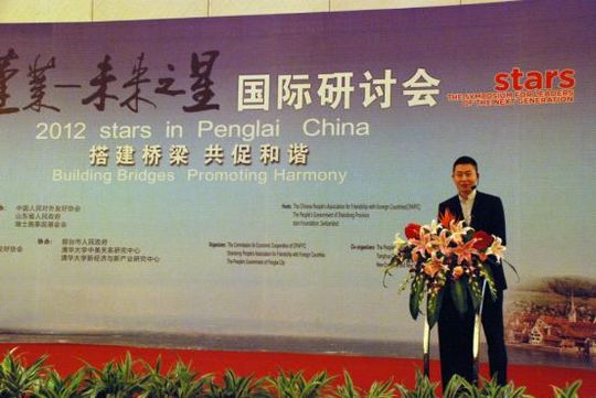 6月9日至12日,由中国人民对外友好协会、山东省人民政府和瑞士施泰因基金会共同主办的“2012蓬莱-未来之星”国际研讨会在山东省蓬莱市成功举办。此次研讨会以“搭建桥梁,共促和谐”为主题,有来自20多个国家的140多名商业、科学、政治和文化等领域的青年精英及20多名中外知名专家学者及企业负责人参会,共同就当前热点问题进行讨论、交流,借此加强相互间的学习,加深彼此间的友谊,共同分享发展机遇,共同应对各种挑战。