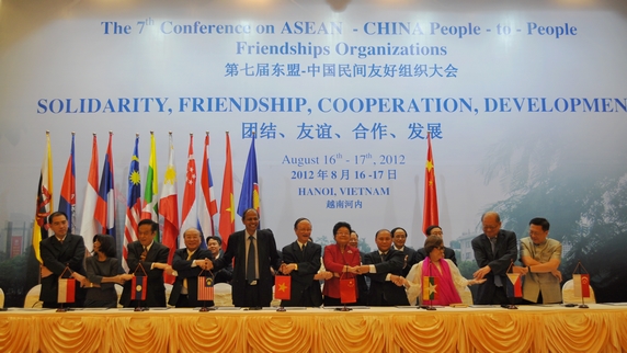 由越南友好组织联合会、越南中国友好协会举办的第七届中国东盟民间友好组织大会(以下简称“大会”)于2012年8月16日至17日在越南首都河内举行。本届大会的主题是“团结、友谊、合作、发展”。以中国东盟协会会长顾秀莲为团长的中国东盟协会代表团以及东盟10国对华友好组织代表共同出席了本届大会。