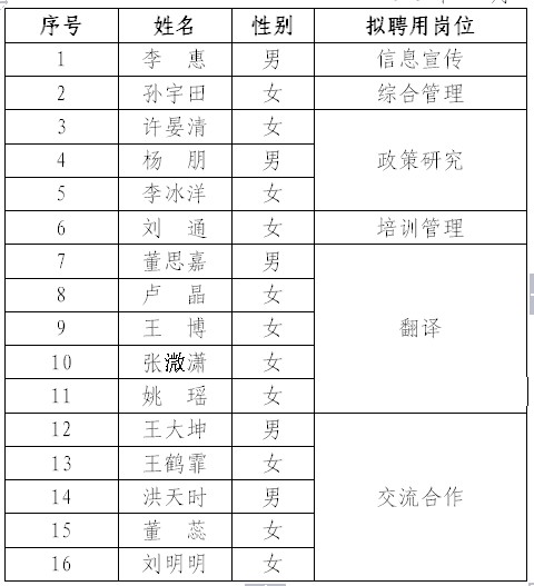 中国人民对外友好协会2013年事业单位公开招聘拟聘用人员公示