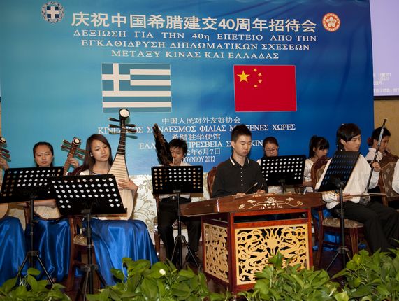 Vice-Chairman Sun Jiazheng, Ambassador Georgakelos, with the Chinese and foreign attendants watched the performance of the Chinese and Greek artists.