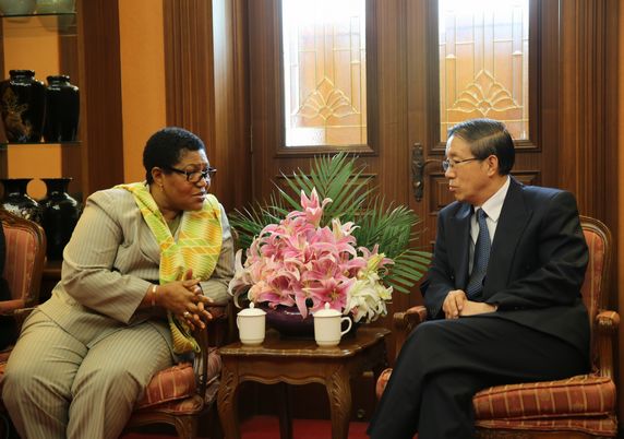 Vice President Feng Zuoku met and dined Mrs. Helen Kofi, Ambassador of Ghana in China on April 17, 2013 in the CPAFFC.