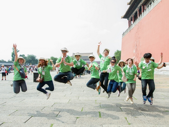 Chinese volunteer worked as a tour guide for the Korean students(at Forbidden City)
