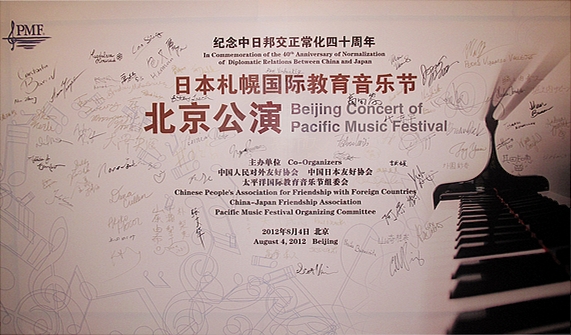 In the evening of Aug.,4th, the Beijing Concert of Pacific Music Festival (PMF) Orchestra, which co-sponsored by the Chinese People’s Association for Friendship with Foreign Countries (CPAFFC), China-Japan Friendship (CJFA) Association and Organizing Committee of Pacific Music Festival, was held in Century Theater, Beijing. Liu Deyou, the former vice minister of Ministry of Culture of China, Jing Dunquan, the vice-president of the CPAFFC and CJFA, Niwa Uichiro, the Japanese Ambassador in China and other representatives from all circles of China and Japan were present.
