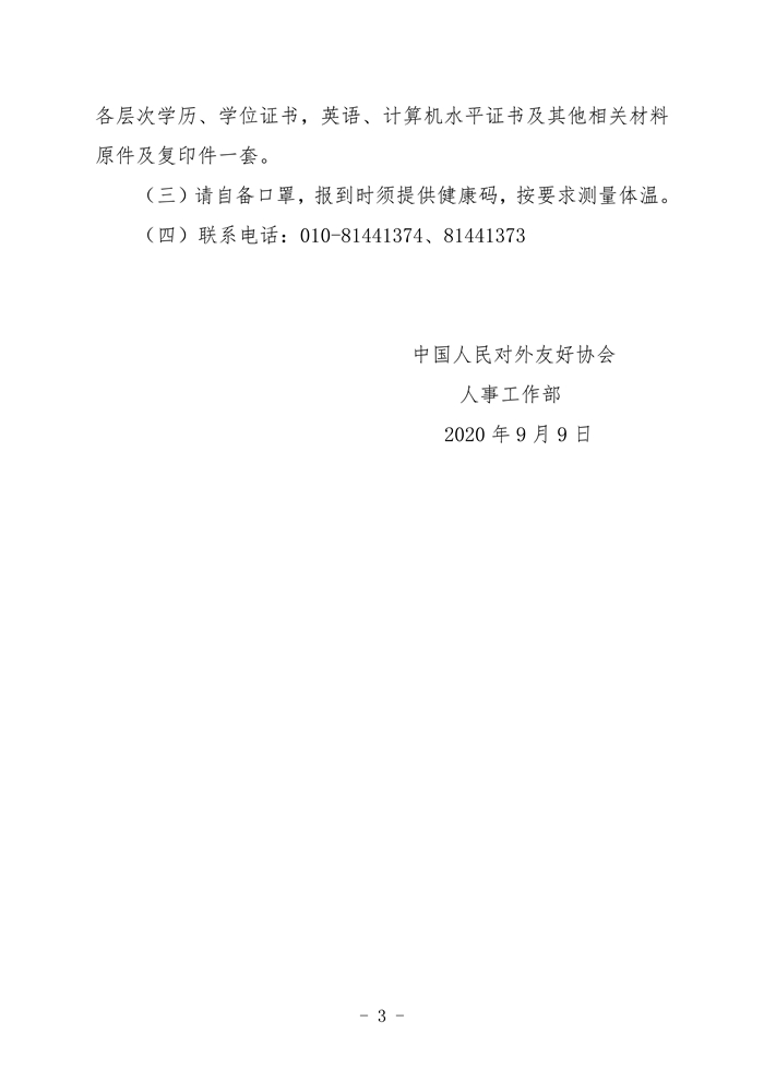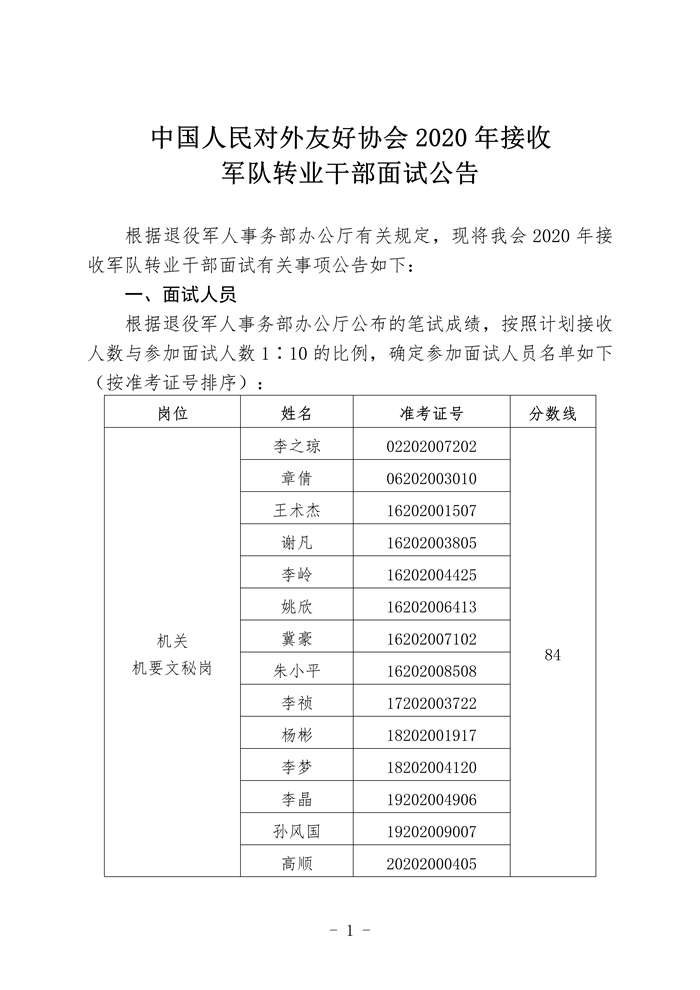 中国人民对外友好协会2020年接收军队转业干部面试公告